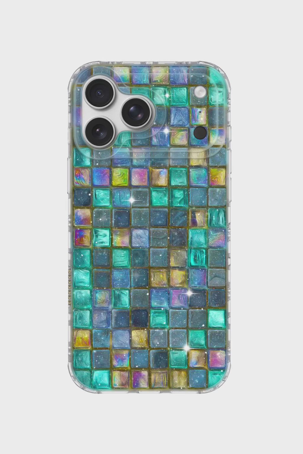 This refreshing design features a dense mosaic-style grid of icy blue and pale lavender tones, capturing the effervescent spirit of a chilled sparkling wine. Secure your phone with lighthearted charm and elegant defense.