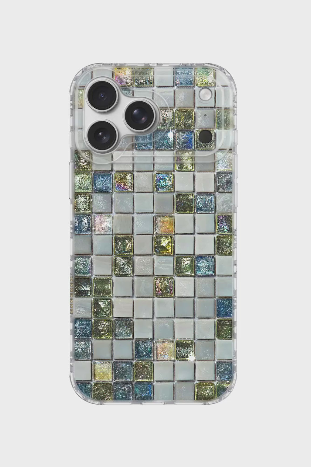 This whimsical design features a unique mosaic of square tiles in a tranquil blend of soft blues, greens, and creamy whites. The color palette evokes the magical scales of a mermaid, offering a fun, dreamy style and robust protection for your device.