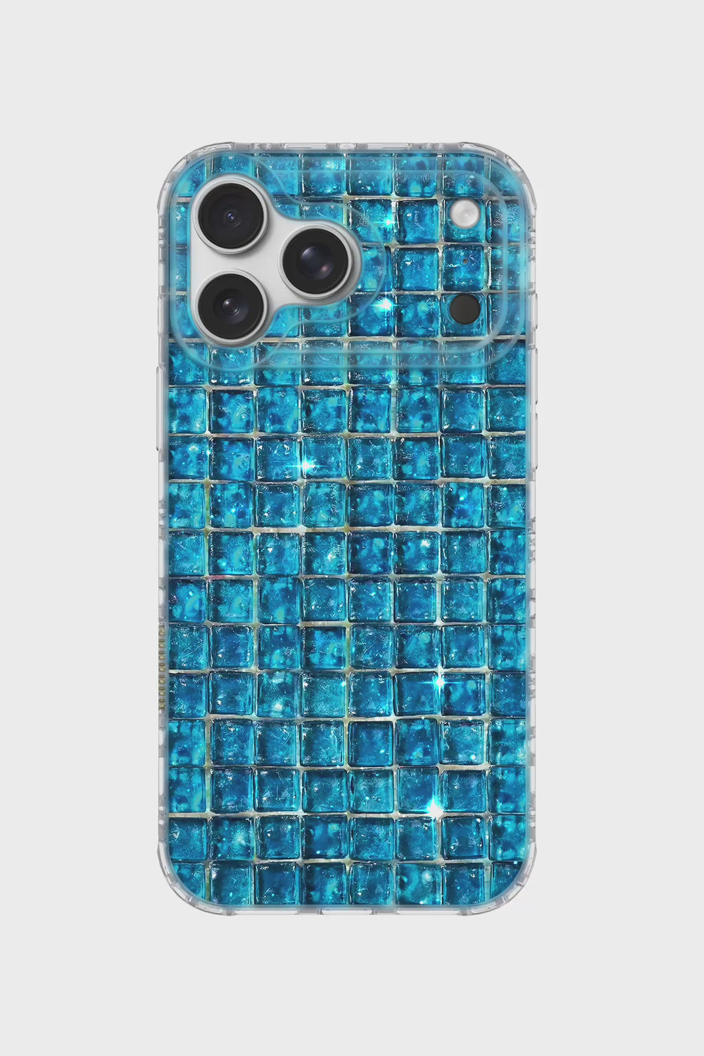 Featuring a mosaic pattern in refreshing teal and blue hues, this case sparkles with embedded glitter, reminiscent of light dancing on water. Give your phone a vibrant and protective upgrade.