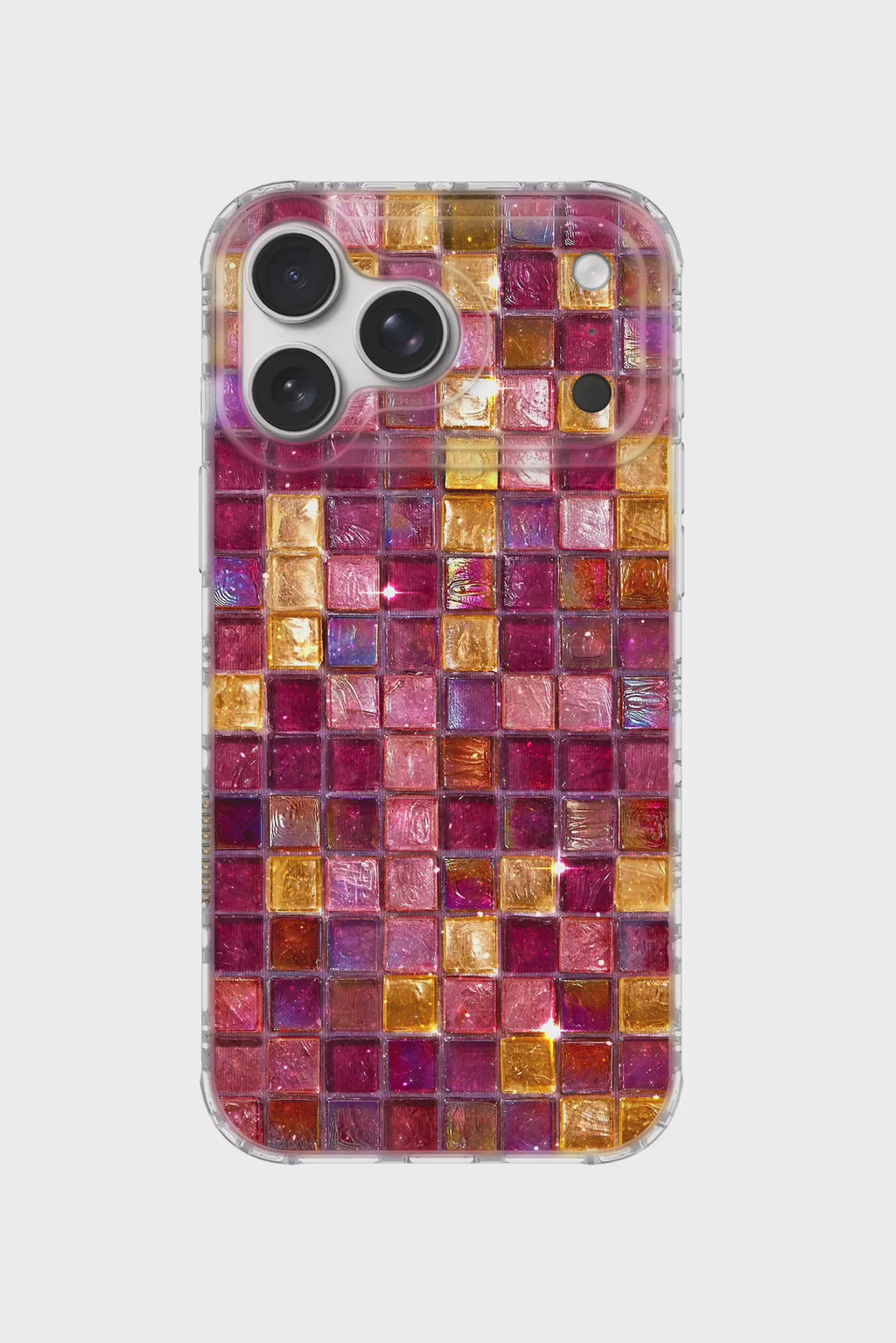 This captivating design features a textured mosaic of irregular tiles in radiant pinks, fiery oranges, and golden browns, subtly revealing iridescent whispers of blue, green, and purple. It evokes the breathtaking beauty of a twilight sky, offering a unique, luminous style and robust protection for your device.