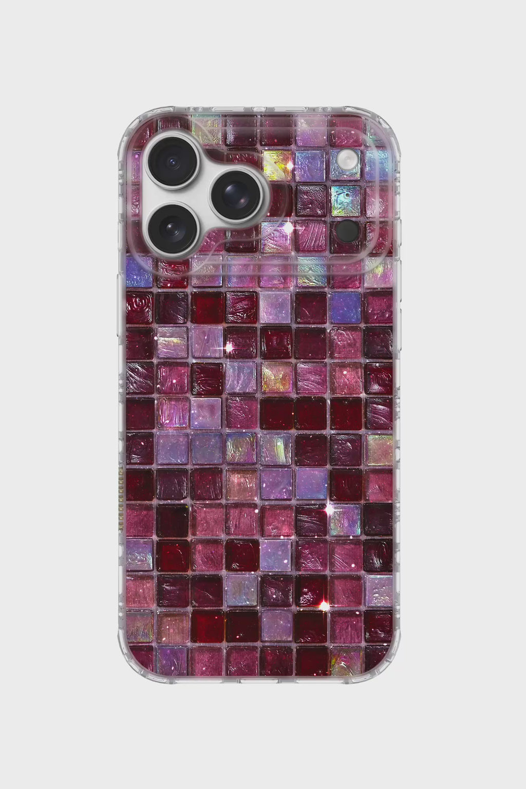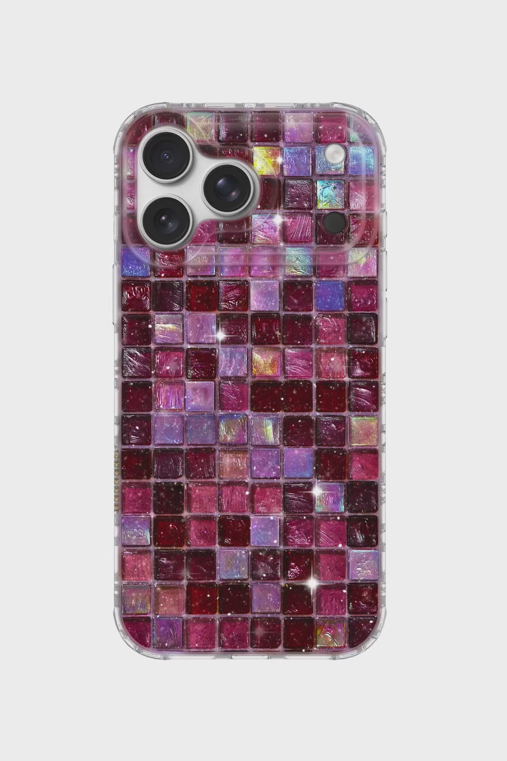 This mesmerizing design showcases a textured mosaic pattern in a celestial blend of deep purples, romantic pinks, and rich reds, imbued with a subtle, shimmering play of gold, blue, and green hues. It's an accessory that brings the enchanting allure of twilight to your fingertips, ensuring reliable protection.